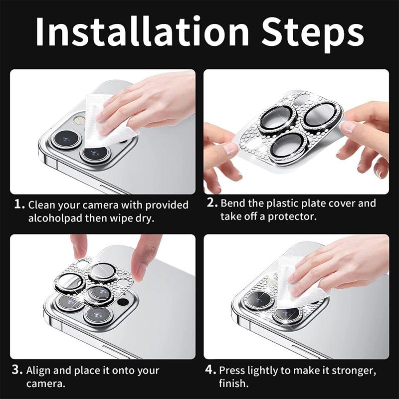 Deze camera beschermer is gemaakt van premium gehard glas met 9H hardheid, geplaatst onder de duurzame aluminium legering ring versierd met glanzende strass steentjes. Het is precies gemaakt om perfect te passen op de cameralenzen van je iPhone 15 Pro, iPhone 15 Pro Max, met een hoge transparantie, zodat het de kwaliteit van de gemaakte foto's en video's niet zal beïnvloeden.