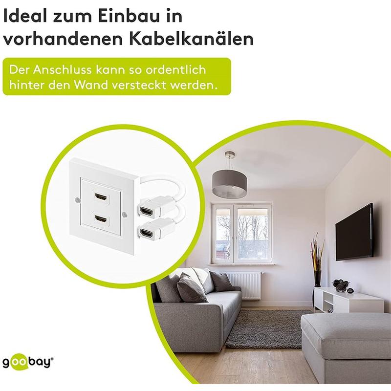 HDMI™-kopplingsdose voor infälld montering gör det möjligt att ansluta 2 HDMI™-kompatibel die tot väggen en överföra signalen tot rum. Signaalverversing met hoge upplösning tot 4K @ 60 Hz (nedkompatibel), HDMI™-inflated låda for snabb, flexibele en estetisk kabeldragning en väggen, HDMI™-vägguttaget a enkelt installera alla standard 68 mm infällda lådor/vägglådor för hålväggsinredning. Inclusief HDMI™-uitvoer voor het aansluiten van tv-apparaten en monitoren met spelconsoles van PlayStation of Xbox en beamers, projectoren en streaming-opties voor Amazon Fire TV of Apple TV, beschikbare HDMI™-koppelingen en geavanceerde technologie garanderen heldere signalen, helder beeld en scherpe video - en beeldkwaliteit. Alle functies van ARC (Audio Return Channel), HDCP, HEC of 3D zijn beschikbaar