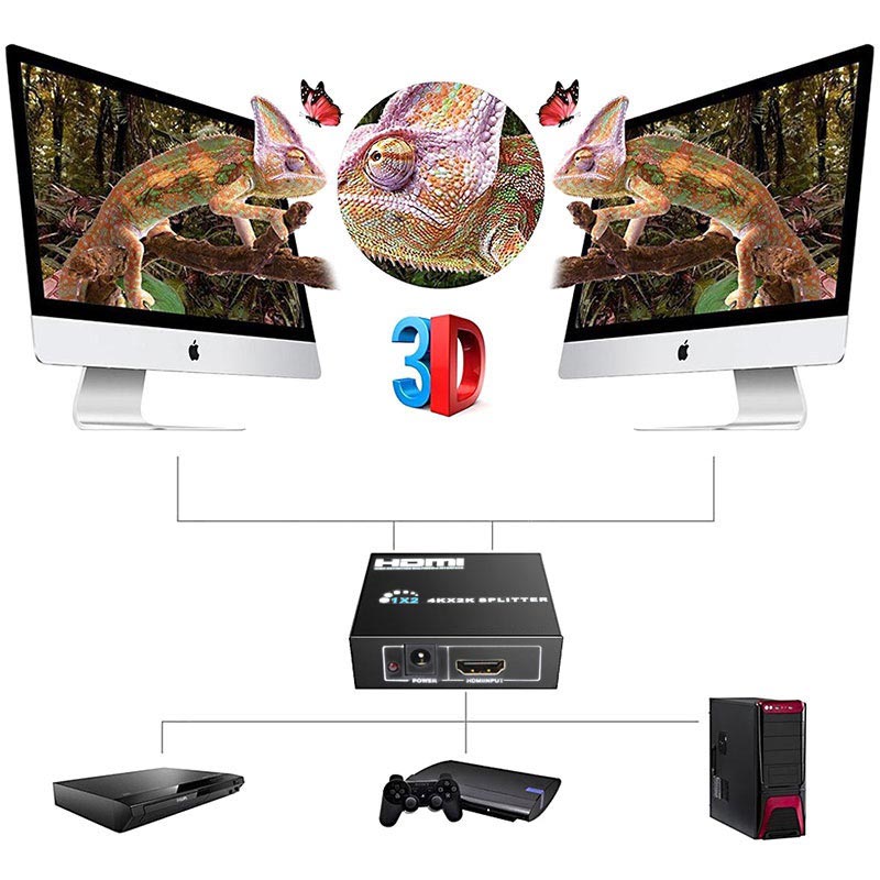 Met deze 1 x 2 HDMI-splitter kunt u één HDMI-ingangssignaal naar twee HDMI-uitgangen distribueren en audio en video verzenden zonder verlies of vertraging. Het ondersteunt tot 3D- en 4K Ultra HD-resoluties.
