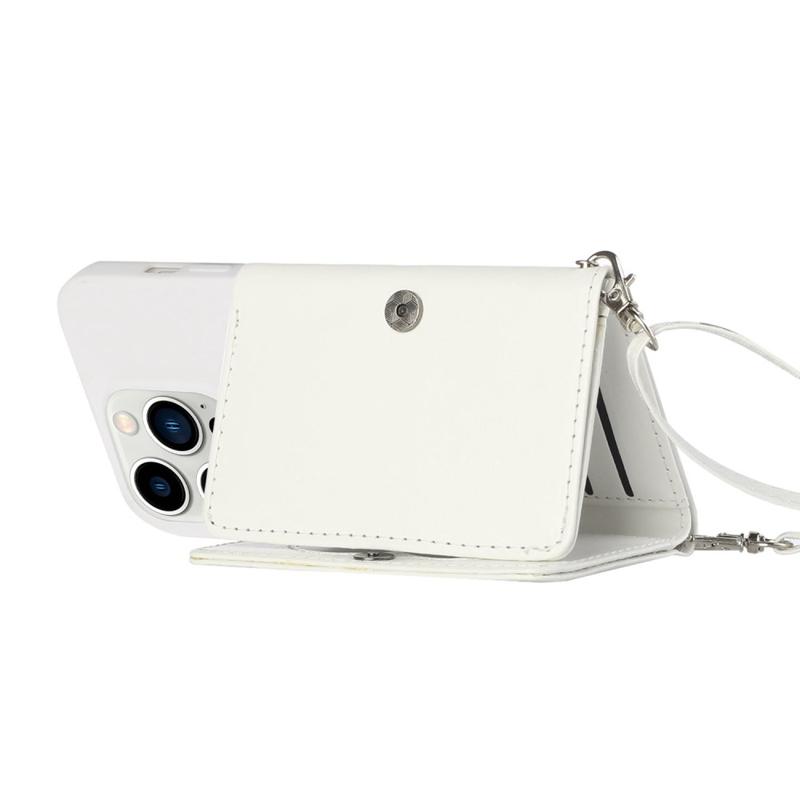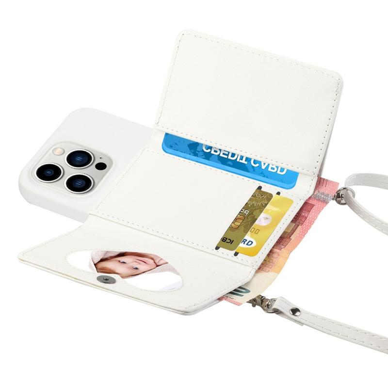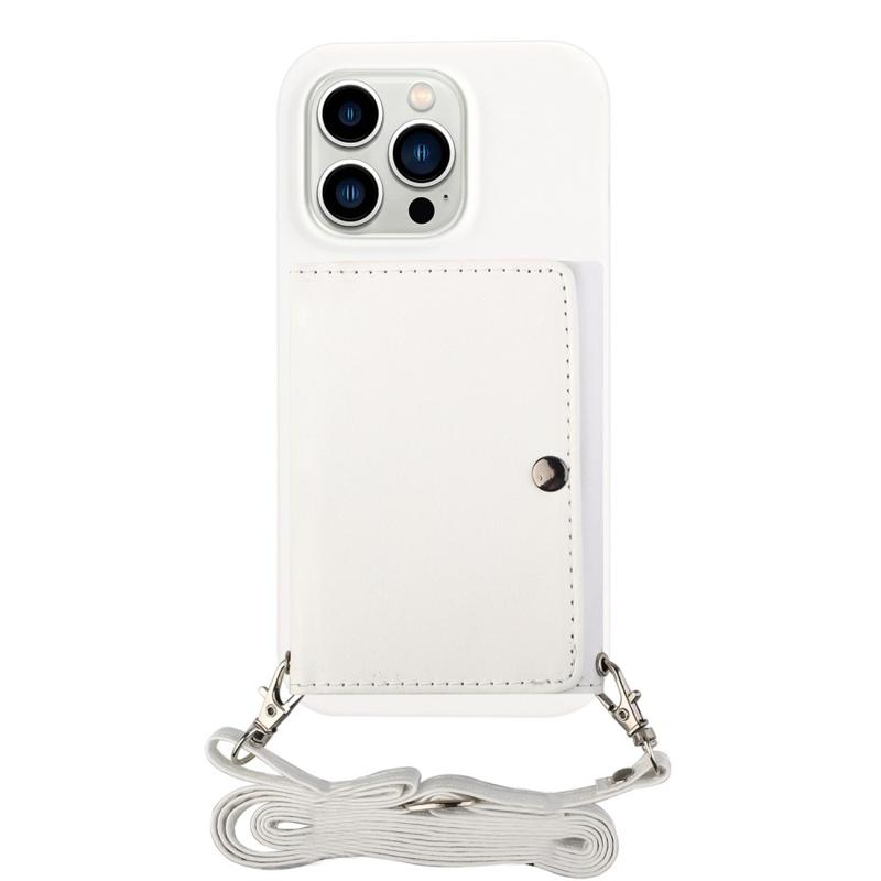 PU lederen portemonnee TPU-hoesje voor iPhone 14 Pro, standaard anti-kras telefoonhoes met schouderriem