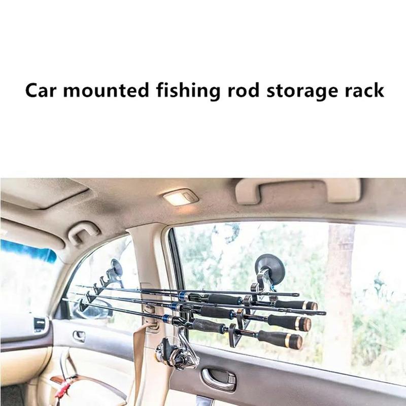 Zuignap Hengelhouder voor in de auto - ABS 4-staafs anti-wirwar hengelhouder voor autoraam, 4 sleuven (24 × 12 cm)