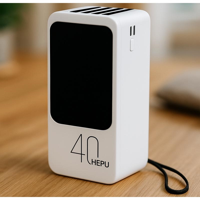De HEPU XL HP210 40000mAh Power Bank is een draagbare oplader met hoge capaciteit, ontworpen voor lange reizen, zware gebruikers en het opladen van meerdere apparaten. Hij is uitgerust met vier ingebouwde kabels (MicroUSB, USB-C, Lightning en USB-A) plus extra USB-poorten, zodat je geen extra kabels hoeft mee te nemen. Met ondersteuning voor snelladen tot 15 W kunnen tot vier apparaten tegelijk worden opgeladen, waardoor hij perfect is voor smartphones, tablets, speakers en andere elektronica. Met zijn compacte maar krachtige ontwerp en handige laadniveau-indicator zorgt de HP210 ervoor dat je nooit zonder stroom komt te zitten wanneer je dat het meest nodig hebt.