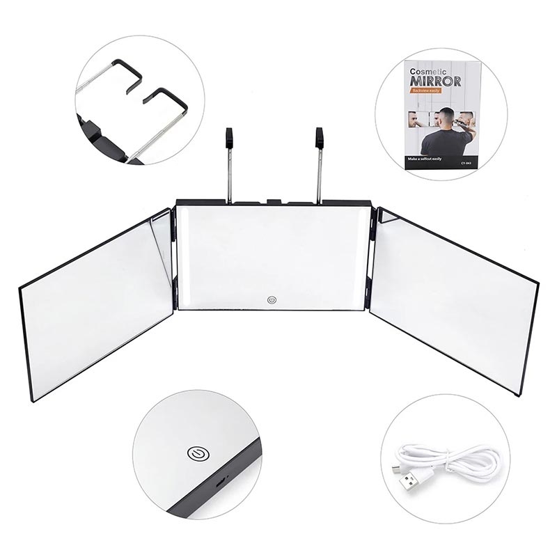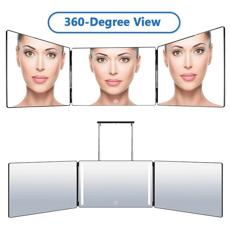 High-Definition LED drievoudig inklapbare make-upspiegel met verstelbare haak