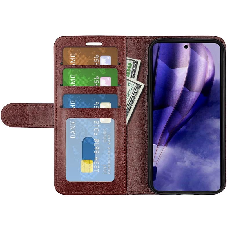 Ontworpen voor het gemak, deze portemonnee case is voorzien van drie kaartsleuven en een zijvak voor het dragen van uw kaarten en geld onderweg. De opvouwbare standaard zorgt voor gemakkelijk kijken, waardoor het perfect is voor zowel werk als vrije tijd. De easy-open sluiting met twee magneetsluitingen aan de zijkant zorgt ervoor dat je spullen goed vastzitten.