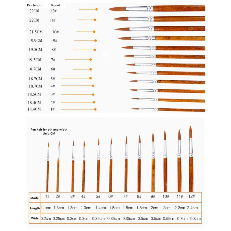 Verfraai je artistieke creaties met de 12-delige nylon borstel set. Deze veelzijdige penselen met ronde punten zijn ideaal voor acryl-, aquarel- en olieverfschilderijen en zijn geschikt voor zowel beginnende als professionele kunstenaars.