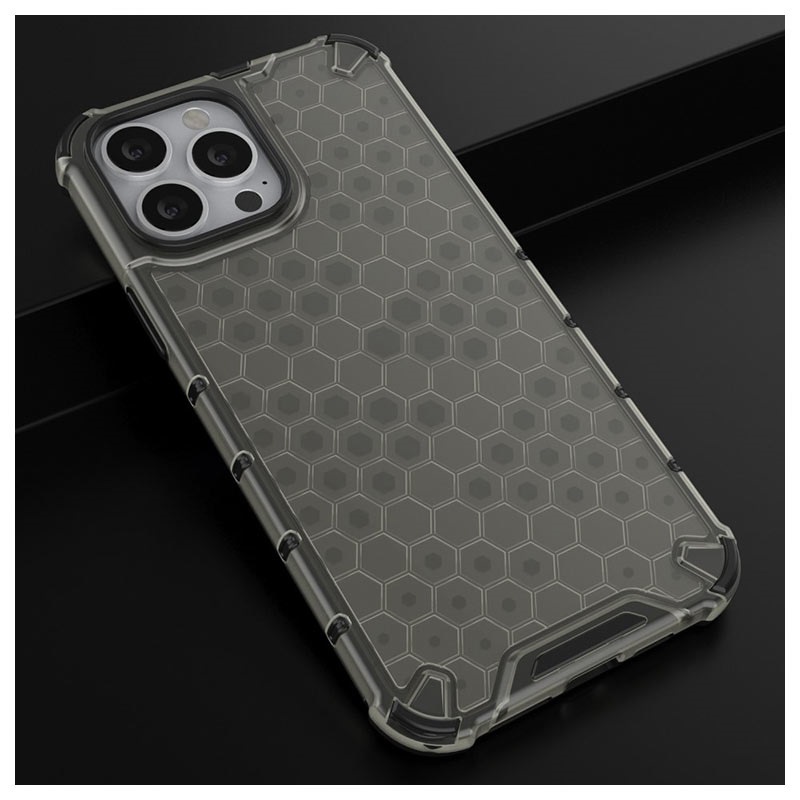 Het Honeycomb Armored hybride hoesje vertegenwoordigt een extra duurzaam schild voor je iPhone 14 Pro.