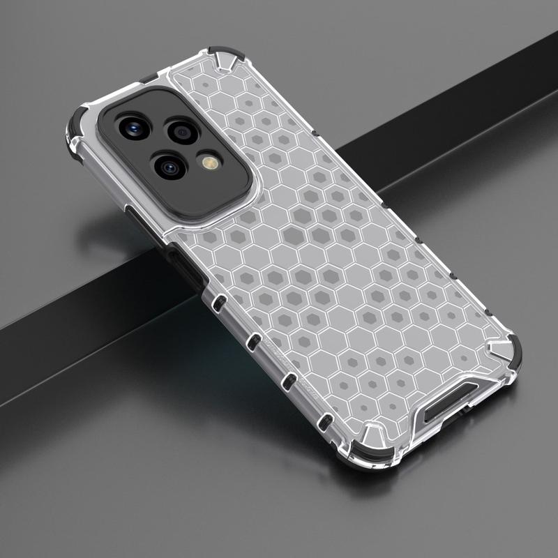 Dit hybride hoesje voegt een hypermoderne stijl toe aan je Honor 200 Lite met zijn honingraatpatroon en doorschijnende achterkant. Perfect passende, flexibele TPU randen zijn versterkt waar dat het meest nodig is en hebben precieze uitsparingen voor alle benodigde poorten en knopafdekkingen die voorkomen dat vuil binnendringt. Tegelijkertijd verhoogt een sterke achterkant van polycarbonaat de stijfheid en duurzaamheid van het hoesje om je Honor 200 Lite te beschermen tegen vallen en stoten.
