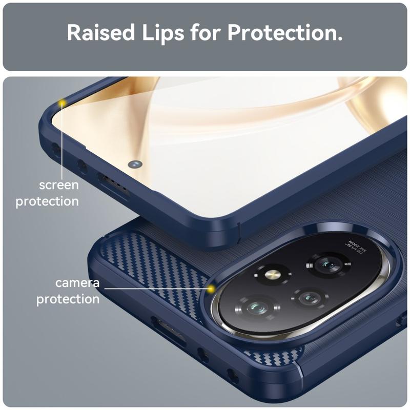 Het hoesje van geborsteld TPU beschermt je Honor 200 Pro voldoende en geeft het een geweldige stijl, dankzij het koolstofvezelpatroon op de achterkant. De case zorgt ook voor oververhitting bij gebruik van je Honor 200 Pro, met zijn ontwerp voor warmteafvoer.
