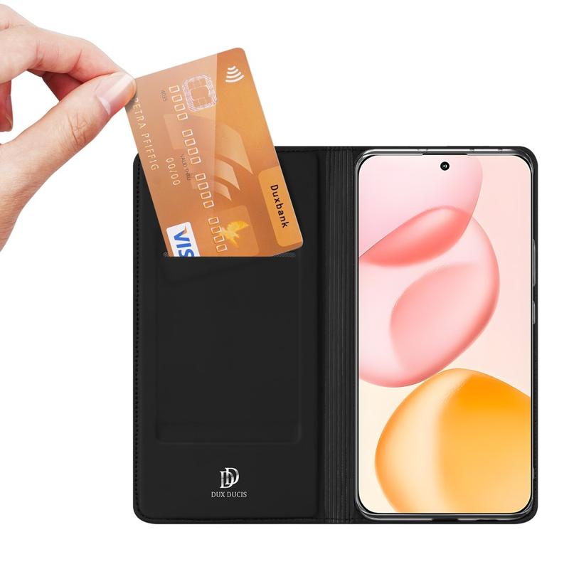 Geef de ultra-robuuste Honor 400 een verfijnde look die nog steeds bestand is tegen dagelijkse stoten. De Dux Ducis Skin Pro cover omhult de telefoon in glad, krasbestendig polyurethaan, terwijl een flexibele TPU schelp binnenin schokken opvangt. Een discrete kaartsleuf en uitklapbare kijkstandaard voegen gemak toe zonder extra bulk.