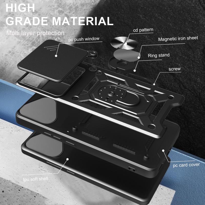 Gemaakt van premium plastic, TPU en metalen materialen, is deze case voor Honor 400 Lite gebouwd om de tand des tijds en bescherming te doorstaan. Met meerdere functies beschermt het perfect je Honor 400 Lite en maakt het ook comfortabel om te gebruiken en te kijken dankzij de roterende ring aan de achterkant.