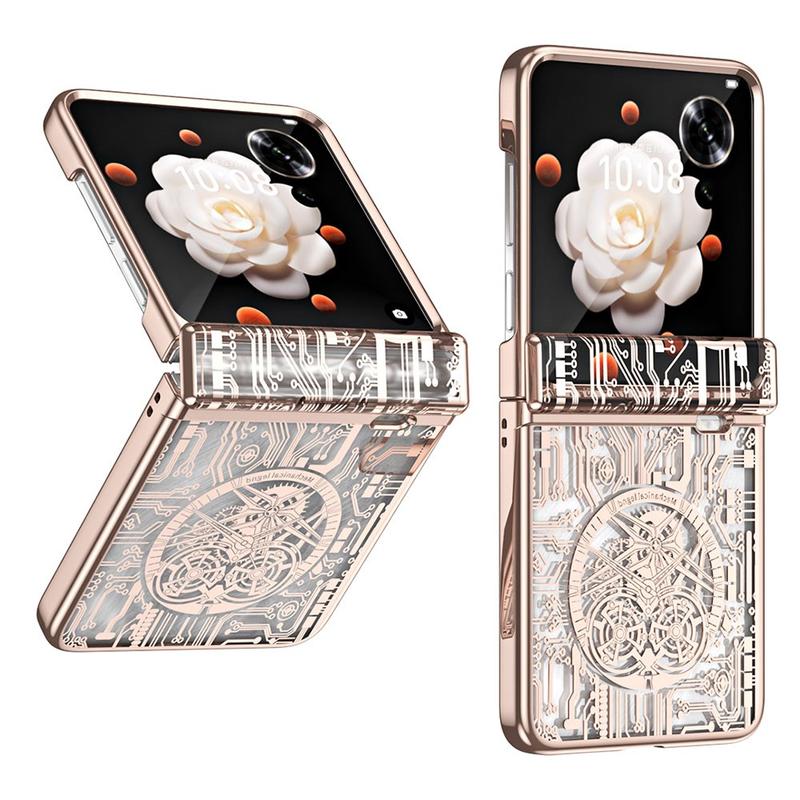 De Mechanical Legend Series Case voor Honor Magic V Flip combineert superieure bescherming met een strak design. Deze gegalvaniseerde PC telefoonhoes, compleet met schermfolie, biedt een uitgebreide bescherming tegen krassen, vallen en dagelijkse slijtage. De stijlvolle afwerking voegt een vleugje elegantie toe aan je toestel, waardoor het zowel functioneel als modieus is.