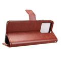 Eén accessoire doet het werk van drie: etui, portemonnee en kickstand. De Crazy Horse afwerking ontwikkelt na verloop van tijd een subtiel patina, waardoor elke hoes een uniek karakter krijgt.