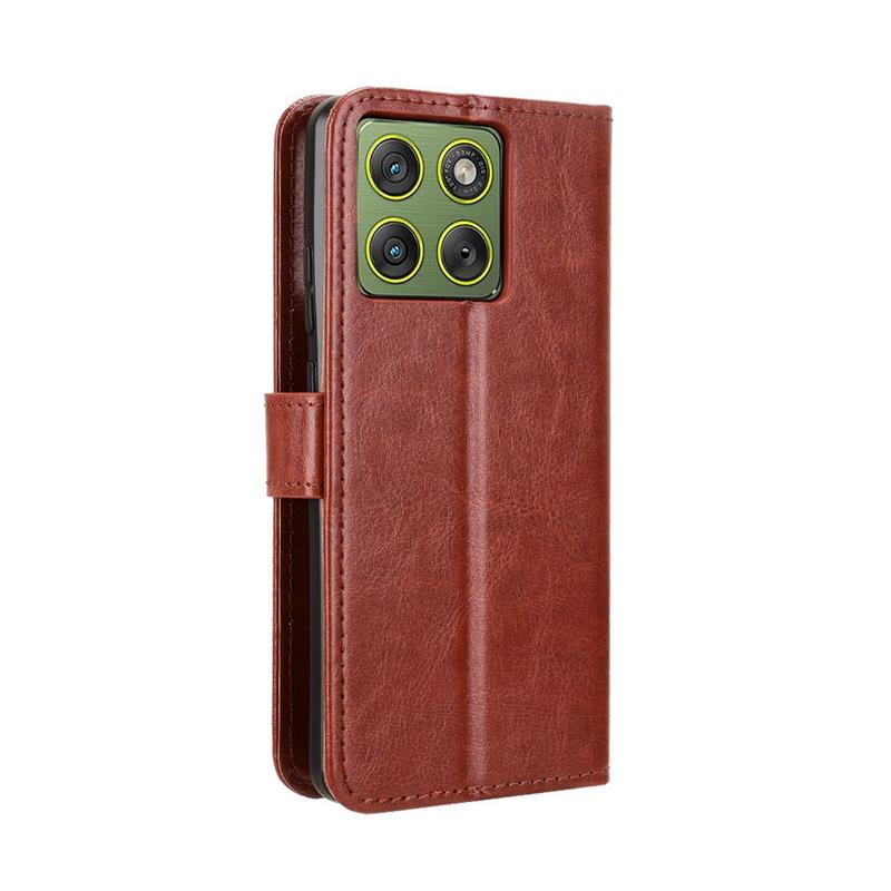 De naam "Crazy Horse" komt van traditioneel ruiterzadelmakerij; het gestructureerde oppervlak is behandeld met wassen die een tweekleurig, optrekkend effect creëren, dat volnerfleer nabootst terwijl het diervriendelijker, lichter en krasbestendiger blijft. Dat maakt het ideaal voor telefoonaccessoires voor dagelijks gebruik waarbij zowel duurzaamheid als stijl belangrijk zijn.