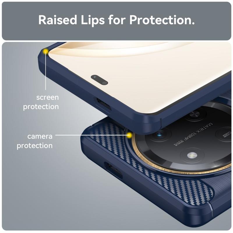 Het hoesje van geborsteld TPU beschermt je Honor X60 Pro voldoende en geeft het een geweldige stijl, dankzij het koolstofvezelpatroon op de achterkant. De case zorgt ook voor oververhitting bij gebruik van je Honor X60 Pro, met zijn ontwerp voor warmteafvoer.