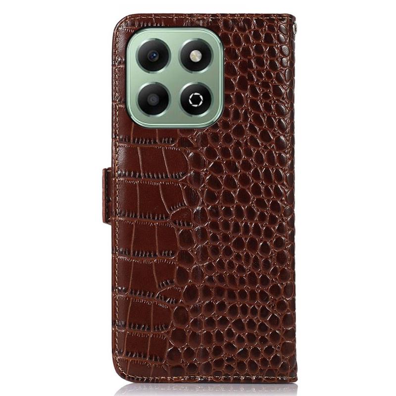 Honor X6b Crocodile Series Wallet Leren Hoesje met RFID - Bruin