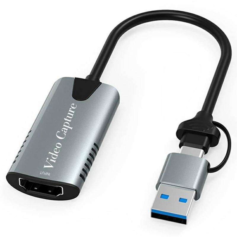 HU-04A 2-in-1 HDMI-naar-USB-C/USB-A-videokaart - Grijs