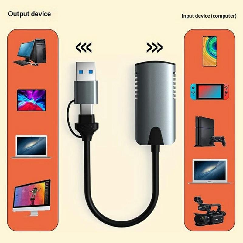 • HU-04A 2-in-1 HDMI-naar-USB-C/USB-A-videokaart - Adapter voor 1080p-streaming en -opname