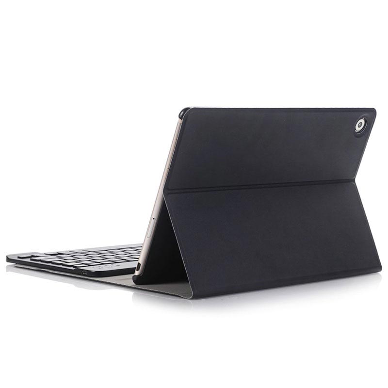 Flip case met afneembaar Bluetooth toetsenbord voor je Huawei MediaPad M5 10, MediaPad M5 10 (Pro). De case beschermt je tablet tegen dagelijkse schade. U kunt ook een standaard vormen om uw Huawei MediaPad M5 10, MediaPad M5 10 (Pro) in perfecte positie te houden voor het bekijken van video's of surfen op het web. Dankzij het afneembare Bluetooth-toetsenbord kun je het los van de hoes gebruiken.