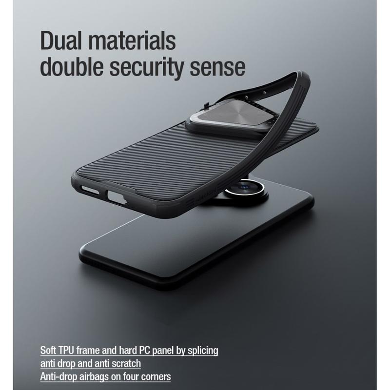- Deze buitengewone Nillkin CamShield Prop hybride hoes is gemaakt van plastic en TPU-materialen