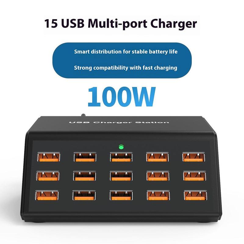 - Enorme oplaadcapaciteit voor 15 poorten - Laad tegelijkertijd tot 15 apparaten op met een totaal uitgangsvermogen van 100W, zodat elk apparaat efficiënt en stabiel wordt opgeladen.