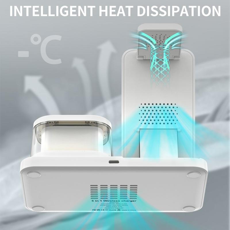 HYY-H33 5-in-1 15W opvouwbaar oplaadstation met nachtlampje - Wit