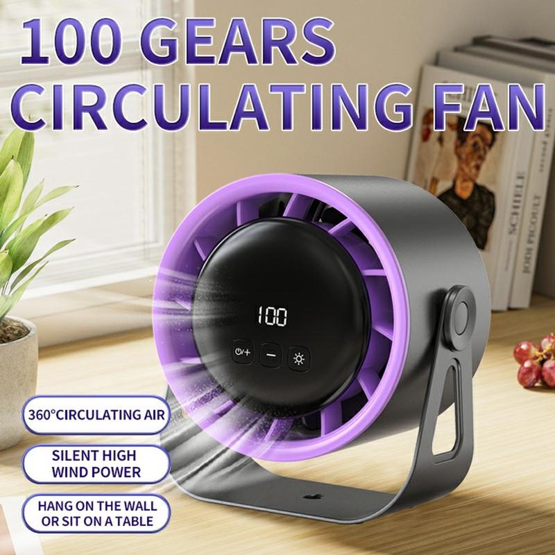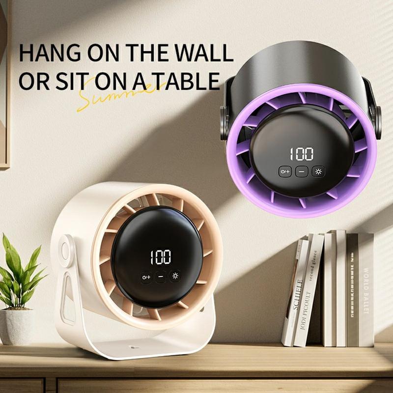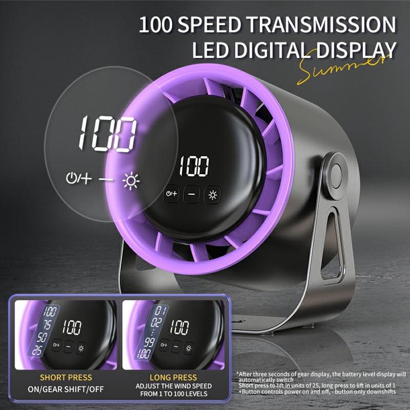 Instelbare bureau- en wandventilator met 100 snelheden, digitaal display en omgevingslicht