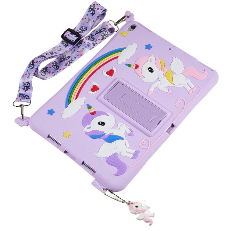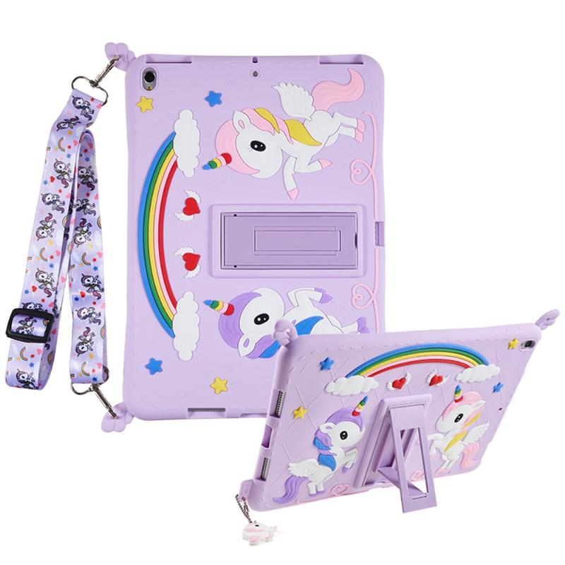 iPad 10.2 2019/2020/2021, iPad Pro 10.5, iPad Air (2019) Schattige Eenhoornhoes met Kickstand en Riem - Paars