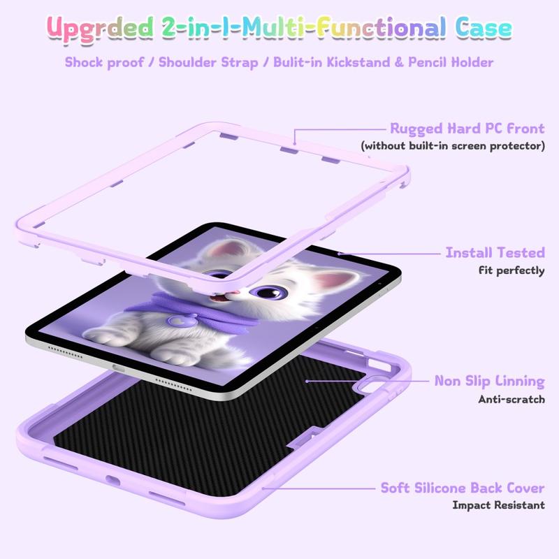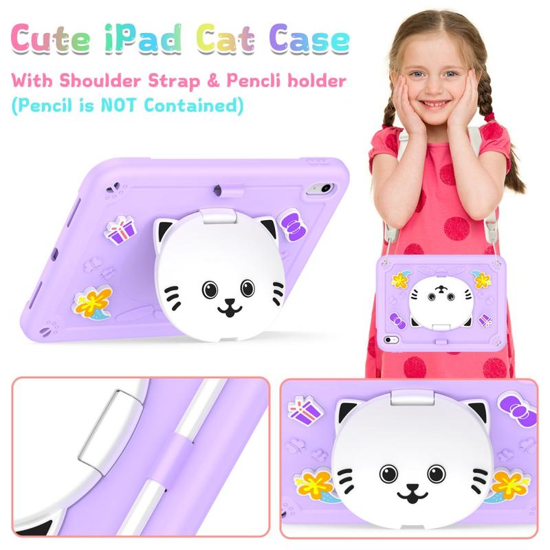 Schattige Kat Hybride Hoes met Kickstand, Schouderriem & Stylushouder voor iPad (2022), iPad (2025)