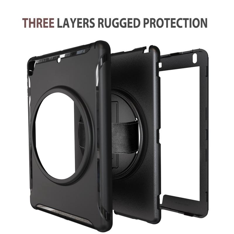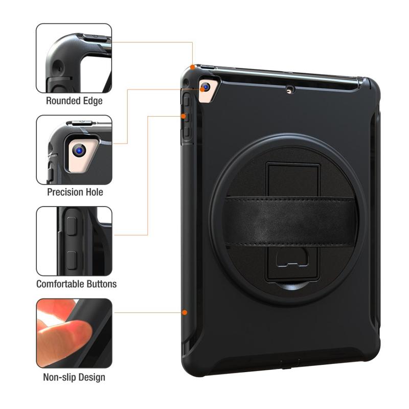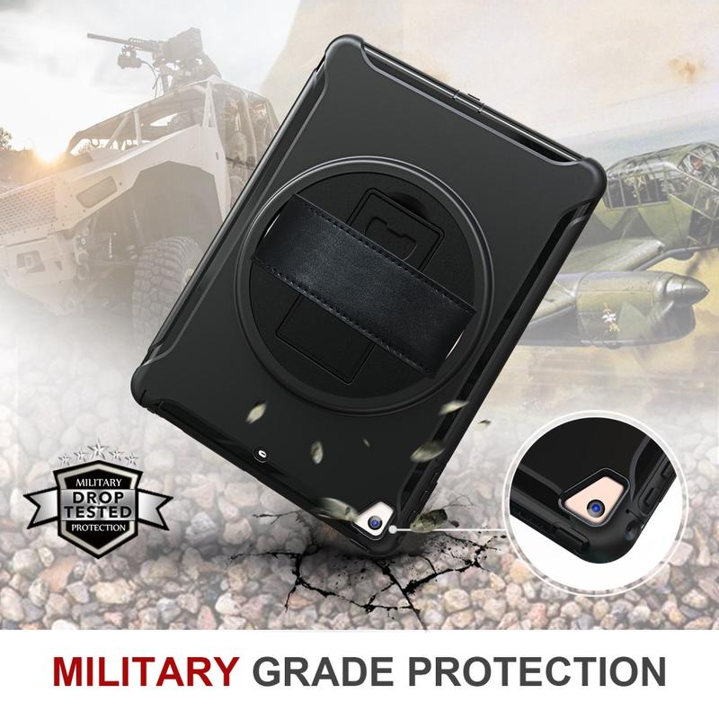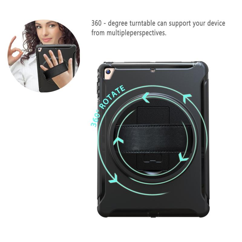 • Heavy Duty 360 Rotary Cover met Polsbandje en Schouderriem voor iPad 9.7 (2017), iPad 9.7 (2018), iPad Air, iPad Air 2, iPad Pro 9.7
