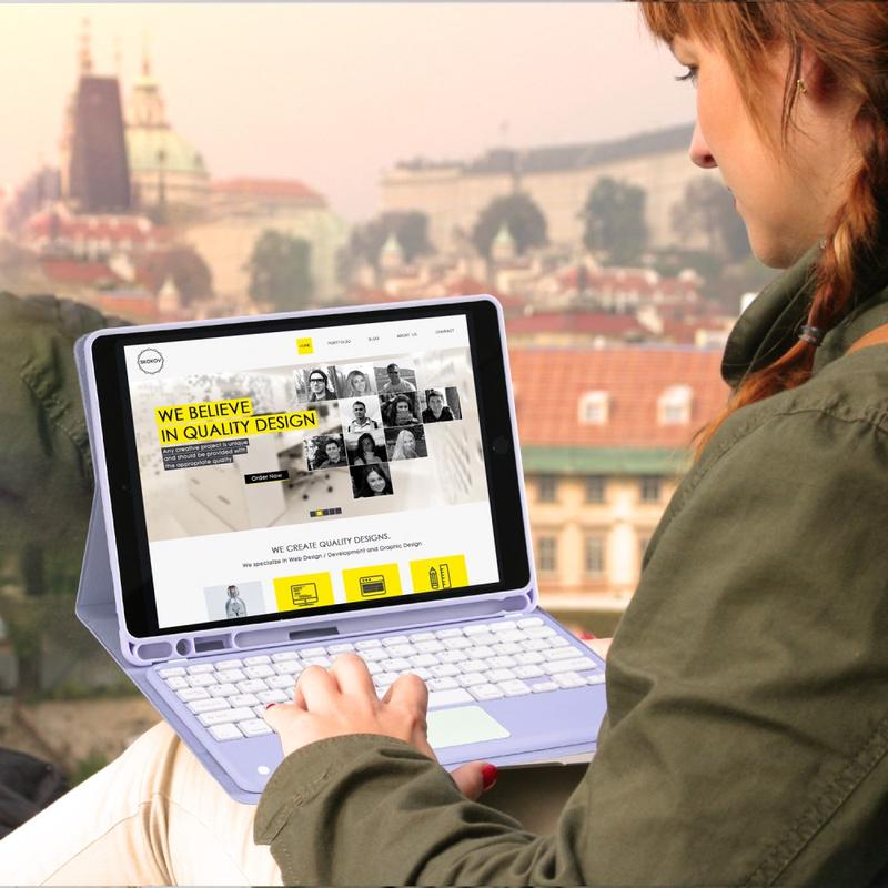 Verfraai je iPad Air 11 2026/2025/2024, iPad Air 2022/2020 met de Bluetooth toetsenbordhoes, een multifunctioneel 2-in-1 accessoire dat bescherming, productiviteit en stijl combineert. Deze slanke hoes is gemaakt van eersteklas polyurethaan en biedt volledige bescherming tegen krassen, schokken en vingerafdrukken met behoud van een professionele uitstraling. Het Bluetooth-toetsenbord maakt draadloos verbinding voor vloeiend, responsief typen, terwijl het geïntegreerde touchpad multi-gesture controle ondersteunt voor moeiteloze navigatie. Dankzij het toetsenbord met achtergrondverlichting kunt u zelfs in omgevingen met weinig licht comfortabel typen. De ingebouwde verstelbare standaard biedt een ergonomische kijkhoek, waardoor het perfect is voor typen, streamen of lezen. Deze toetsenbordhoes is ontworpen voor zakelijk, reis- of dagelijks gebruik en verandert je tablet in een draagbaar werkstation.