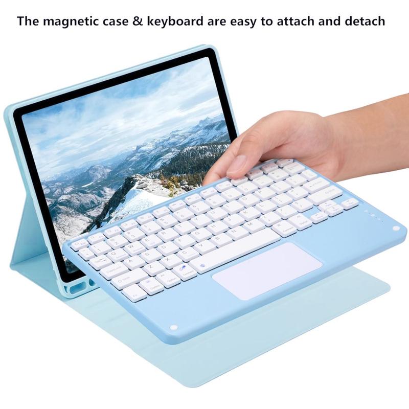 Verfraai je iPad Air 11 2026/2025/2024, iPad Air 2022/2020 met de Bluetooth toetsenbordhoes, een multifunctioneel 2-in-1 accessoire dat bescherming, productiviteit en stijl combineert. Deze slanke hoes is gemaakt van eersteklas polyurethaan en biedt volledige bescherming tegen krassen, schokken en vingerafdrukken met behoud van een professionele uitstraling. Het Bluetooth-toetsenbord maakt draadloos verbinding voor vloeiend, responsief typen, terwijl het geïntegreerde touchpad multi-gesture controle ondersteunt voor moeiteloze navigatie. Dankzij het toetsenbord met achtergrondverlichting kunt u zelfs in omgevingen met weinig licht comfortabel typen. De ingebouwde verstelbare standaard biedt een ergonomische kijkhoek, waardoor het perfect is voor typen, streamen of lezen. Deze toetsenbordhoes is ontworpen voor zakelijk, reis- of dagelijks gebruik en verandert je tablet in een draagbaar werkstation.