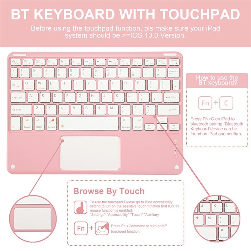 Verfraai je iPad Air 11 2026/2025/2024, iPad Air 2022/2020 met de Bluetooth toetsenbordhoes, een multifunctioneel 2-in-1 accessoire dat bescherming, productiviteit en stijl combineert. Deze slanke hoes is gemaakt van eersteklas polyurethaan en biedt volledige bescherming tegen krassen, schokken en vingerafdrukken met behoud van een professionele uitstraling. Het Bluetooth-toetsenbord maakt draadloos verbinding voor vloeiend, responsief typen, terwijl het geïntegreerde touchpad multi-gesture controle ondersteunt voor moeiteloze navigatie. Dankzij het toetsenbord met achtergrondverlichting kunt u zelfs in omgevingen met weinig licht comfortabel typen. De ingebouwde verstelbare standaard biedt een ergonomische kijkhoek, waardoor het perfect is voor typen, streamen of lezen. Deze toetsenbordhoes is ontworpen voor zakelijk, reis- of dagelijks gebruik en verandert je tablet in een draagbaar werkstation.