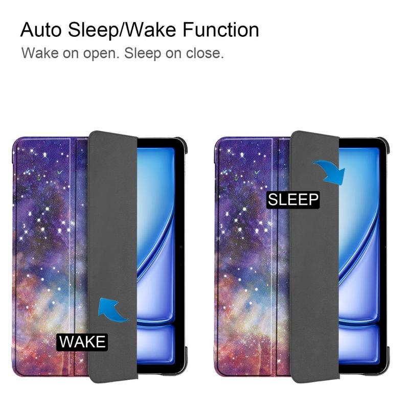 Of je nu een video bekijkt of tekent met een stylus op je iPad Air 13 (2024), deze foliocase houdt hem in een ideale hoek, voor een comfortabelere en productievere ervaring. Ondertussen schakelt de slimme wake-up / sleep-functie het display automatisch in wanneer u de voorklep opent.