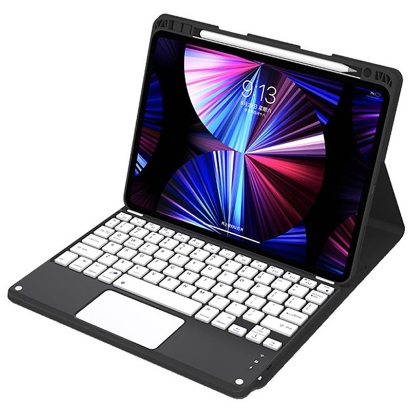 • iPad Air 13 2026/2025/2024, iPad Pro 12.9 2022/2021/2020/2018 Bluetooth Toetsenbordhoes met achtergrondverlichting, touchpad en standaard - US-toetsenbordindeling