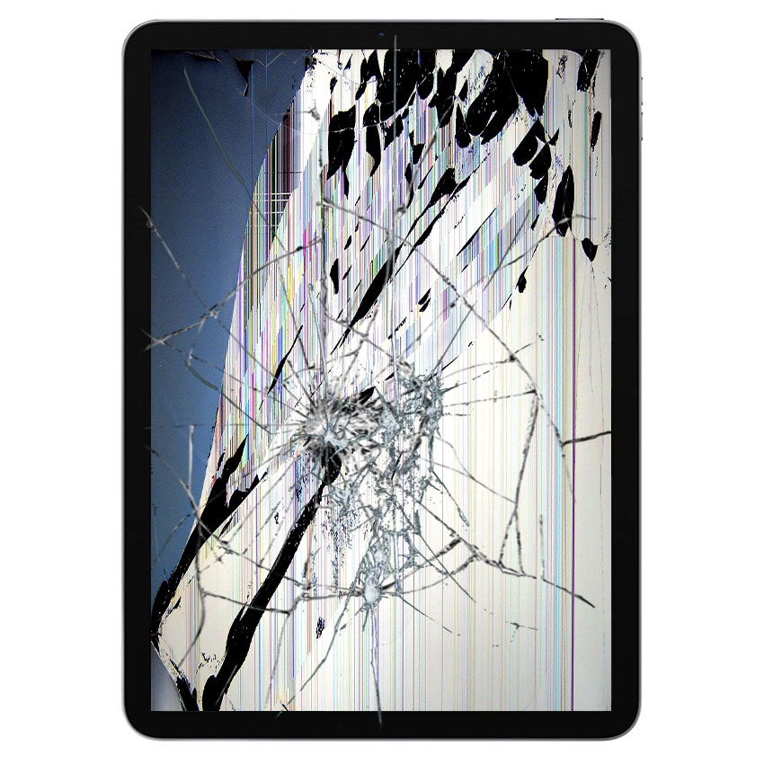 iPad Air (2020), iPad Air (2022) eruit zoals op de foto? Als het Touchscreen niet reageert of erg beschadigd is en het LCD-scherm vertoont ongebruikelijke artefacten of werkt helemaal niet, dan heeft uw apparaat een LCD- en Touchscreen-reparatie nodig.