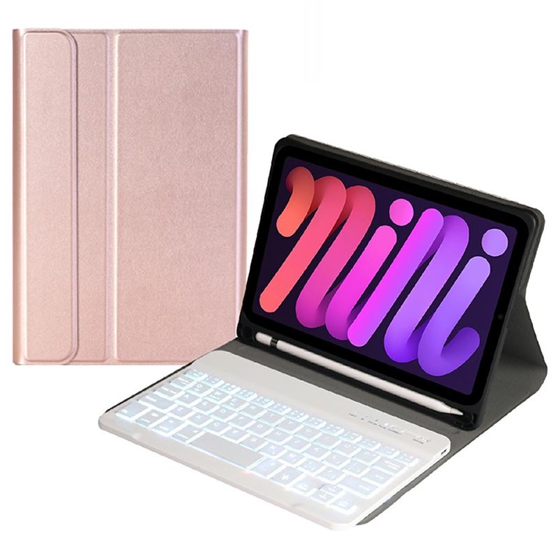 iPad Mini (2021), iPad Mini (2024) Bluetooth Toetsenbordhoes met achtergrondverlichting, touchpad en standaard - US-toetsenbordindeling