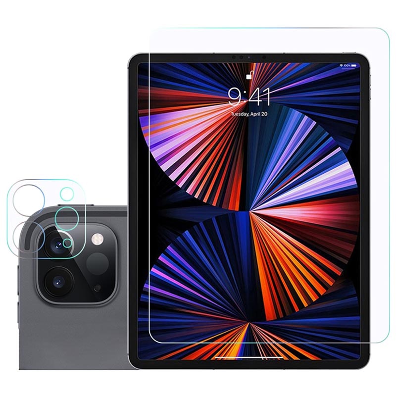Bescherm je iPad Pro 12.9 (2022), iPad Pro 12.9 (2021) scherm en cameralens met deze beschermset van gehard glas.