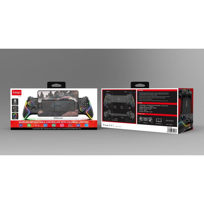 iPega PG-9122 Draadloze RGB-gamepad met stretchfunctie - Hall-effectsticks, 6-assige beweging, turbo/macro, voor Android/iOS (MFi)/PS3/PS4/Switch/pc