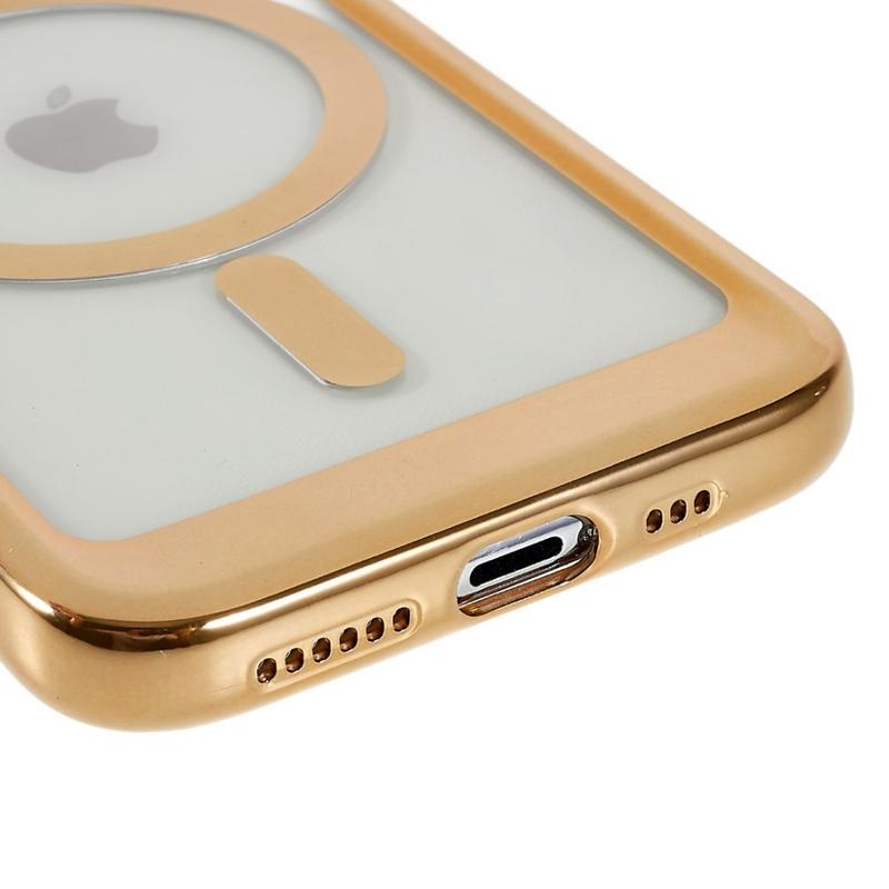 Verfraai je iPhone 11 Pro Max met dit magnetische TPU-telefoonhoesje met galvanische plating, ontworpen om de slanke esthetiek van het apparaat te behouden en tegelijkertijd robuuste dagelijkse bescherming te bieden. Het kristalheldere ontwerp laat de originele stijl van je telefoon zien, aangevuld met een opvallende metalen rand voor een gepolijste afwerking. Met ondersteuning voor magnetisch draadloos opladen en speciale camerabescherming blinkt deze hoes uit in functionaliteit en moderne uitstraling.