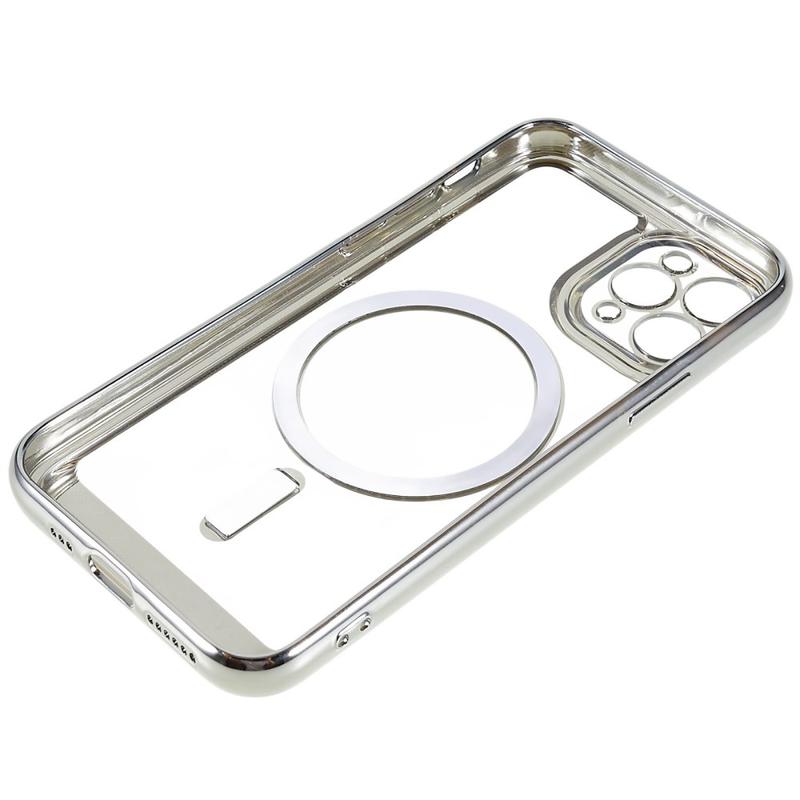 Verfraai je iPhone 11 Pro Max met dit magnetische TPU-telefoonhoesje met galvanische plating, ontworpen om de slanke esthetiek van het apparaat te behouden en tegelijkertijd robuuste dagelijkse bescherming te bieden. Het kristalheldere ontwerp laat de originele stijl van je telefoon zien, aangevuld met een opvallende metalen rand voor een gepolijste afwerking. Met ondersteuning voor magnetisch draadloos opladen en speciale camerabescherming blinkt deze hoes uit in functionaliteit en moderne uitstraling.