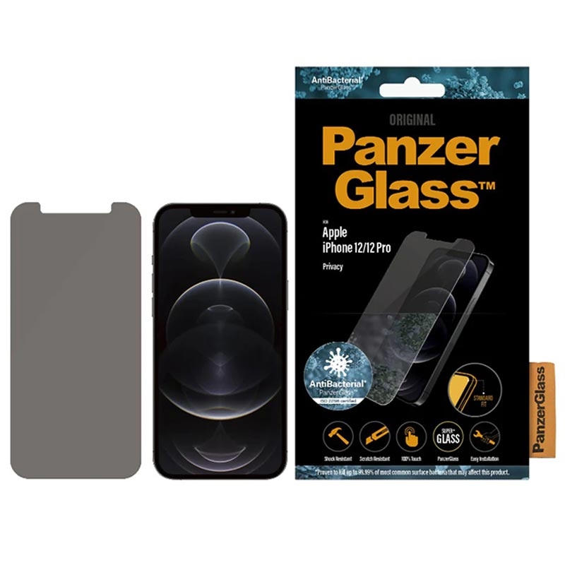 PanzerGlass Standard Fit Privacy AntiBacterial Glazen Screenprotector voor iPhone 12, iPhone 12 Pro