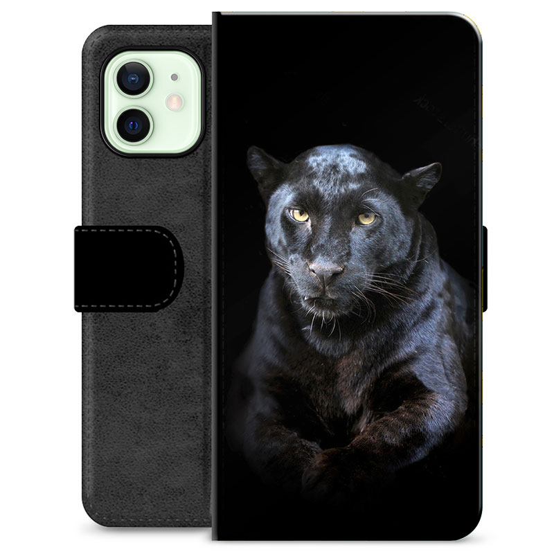 iPhone 12 Premium Portemonnee Hoesje - Zwarte Panter