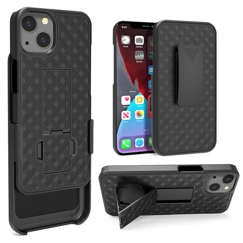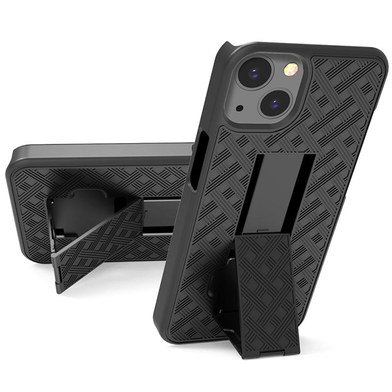 Met deze hoes kunt u handsfree media en video's van uw iPhone 13 bekijken of lezen dankzij de ingebouwde standaard en biedt veiligheid en bescherming. De case bevat ook een ontwerp met riemgesp waarmee je je iPhone 13 overal mee naartoe kunt nemen. Het uitschuifbare ontwerp zorgt voor volledige bescherming tegen alledaagse schade, maar belemmert de toegankelijkheid van uw apparaat niet.
