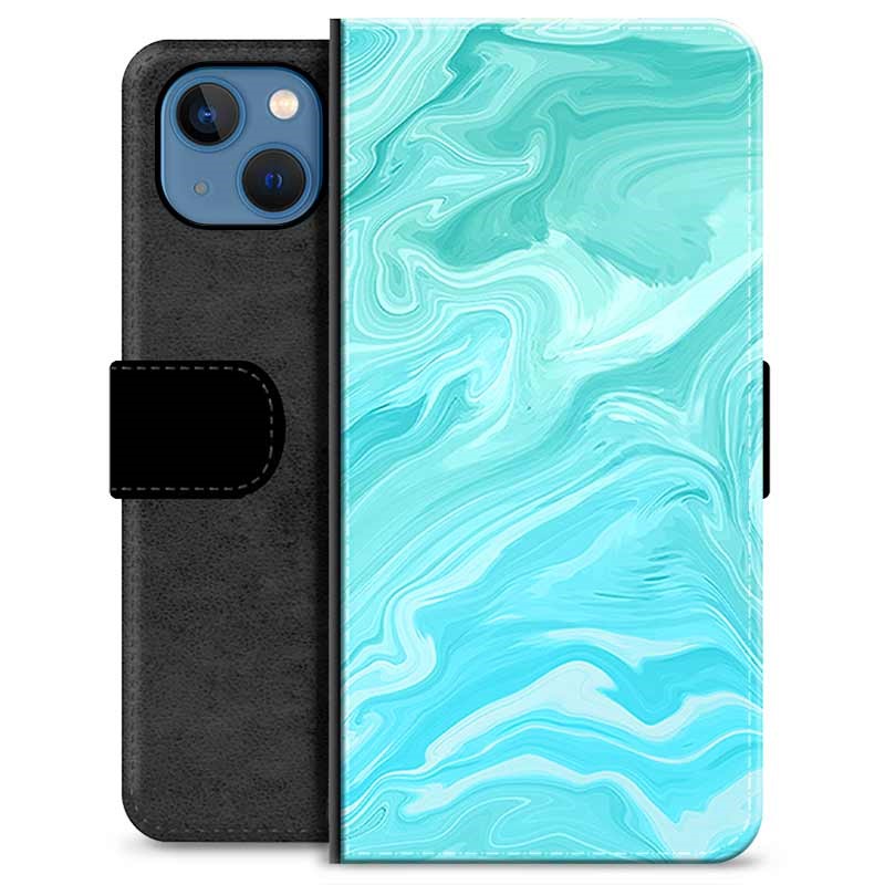 iPhone 13 Premium Wallet Case - Blauw Marmer