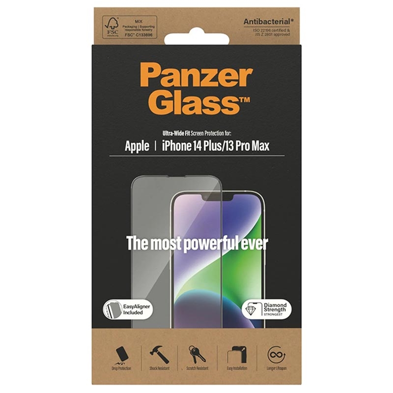 PanzerGlass Ultra-Wide Fit EasyAligner Glazen AntiBacterial Screenprotector voor iPhone 13 Pro Max, iPhone 14 Plus