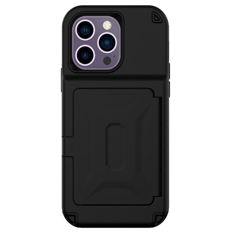 • Voor iPhone 14 Pro Cardcase Serie Kickstand PC + TPU Case Spiegel Functie Kaarthouder Verdikte Telefoon Cover: