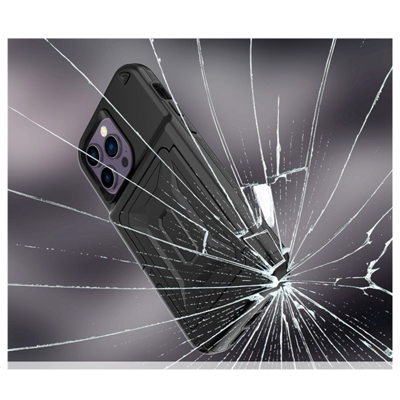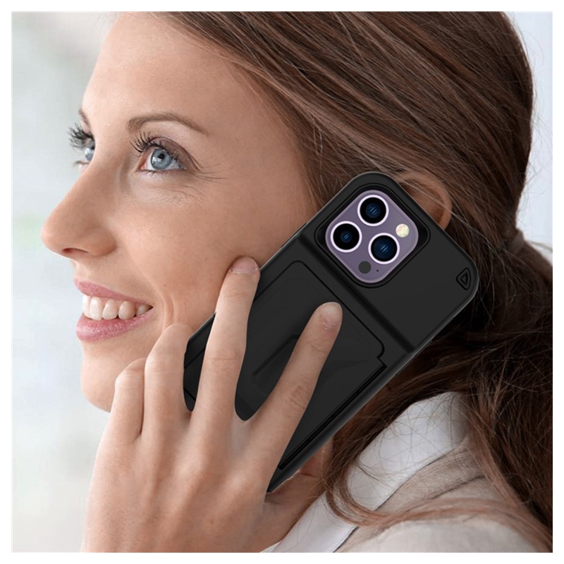 iPhone 14 Pro Hybrid Case met Verborgen Spiegel & Kaartsleuf - Zwart