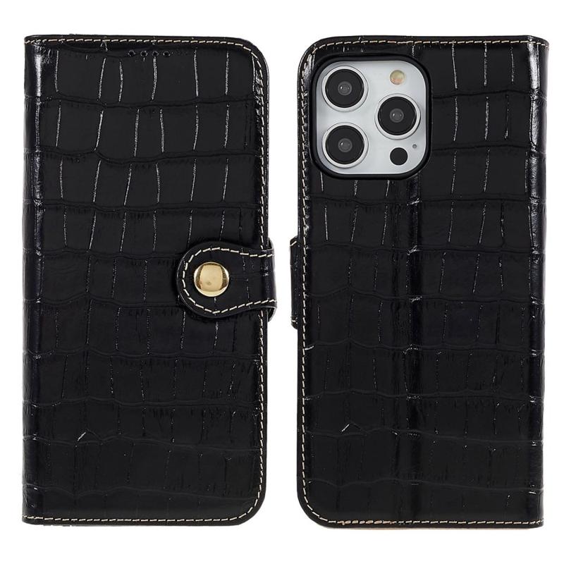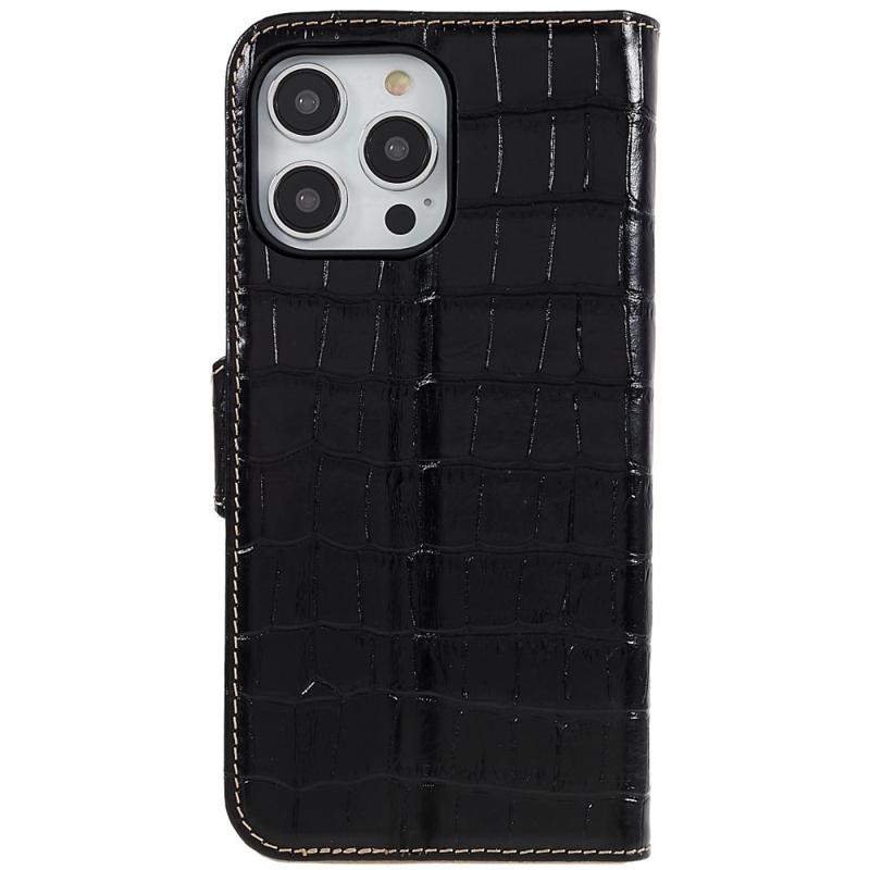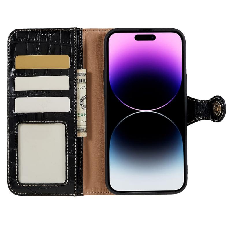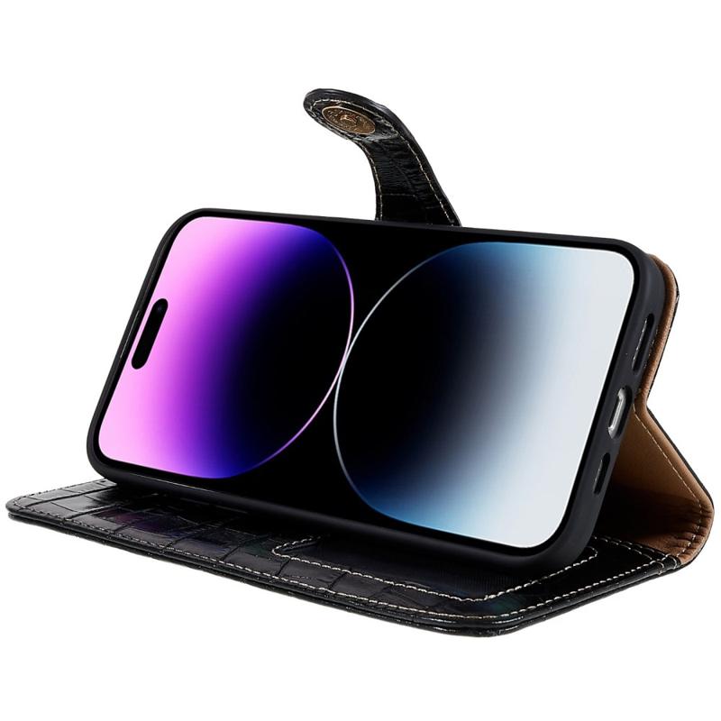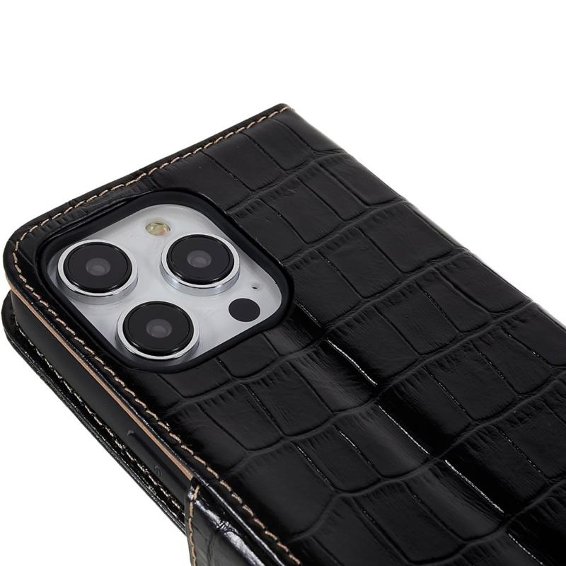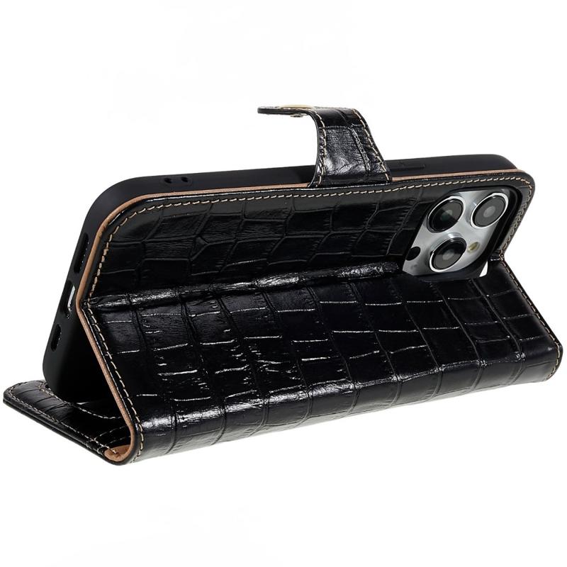 Voor iPhone 14 Pro Max Echt Koeienhuid Lederen Telefoon Case Krokodil Textuur Stand Flip Wallet Cover: