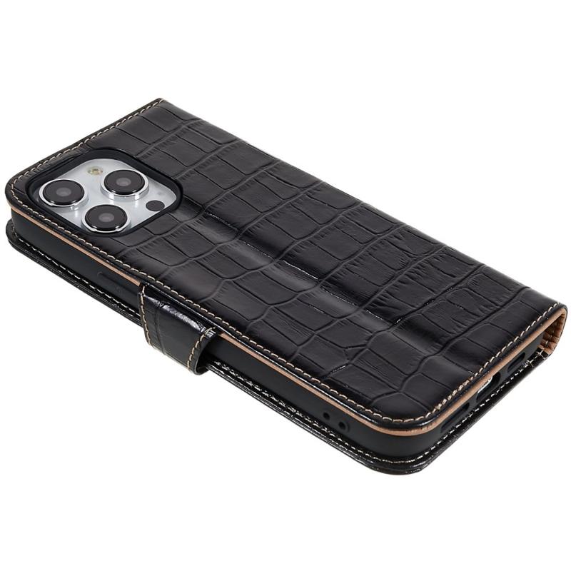 - Premium krokodillentextuur van echt rundleer en TPU-materiaal