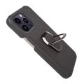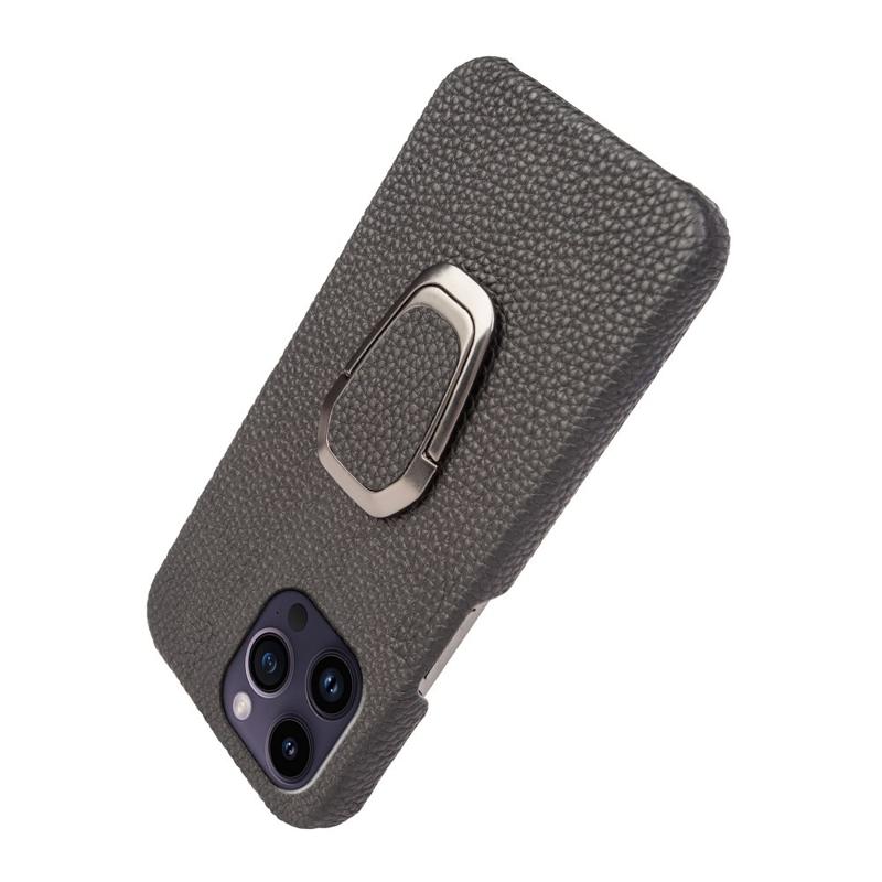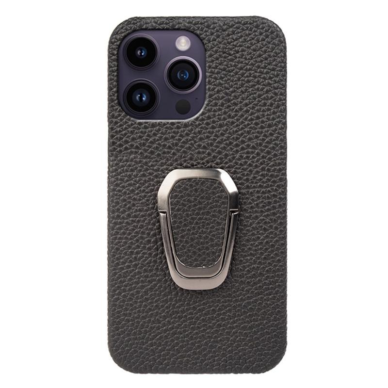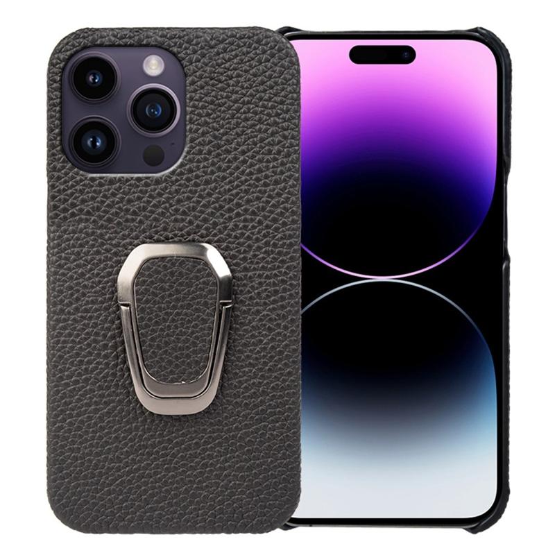 Voor iPhone 14 Pro Max Echt Leer + Hard PC Beschermende Shell Litchi Textuur Ring Kickstand Anti-Drop Telefoon Cover: